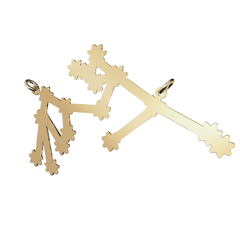 Sia il ciondolo che il bracciale sono rifiniti con cordini di lunghezza regolabile tramite nodi scorrevoli.